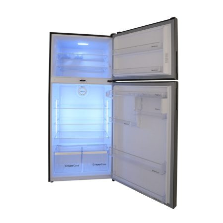 Dawlance Chrome Pro Hairline Silver Refrigerator | Touch Display, Freezer Position: Top, Handle Material: Plastic, Type of Handle: Integrated Handle on side