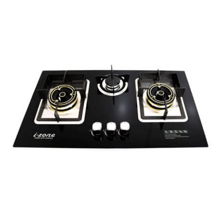 IZONE KITCHEN HOB 1900 with 3 Gas Burners, Heavy Grates, Cast iron pan supports, High efficiency, Removable washing cup and Safety ignition pins.